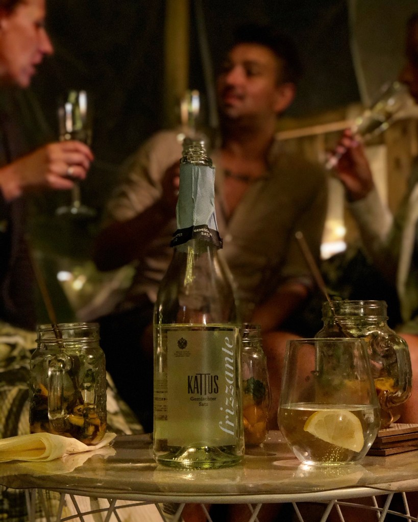 Nachdem alle gestärkt und satt waren, haben wir uns in unsere kleine Terrassenoase gesetzt, geredet und natürlich auch viel gelacht. Geschlossen habe ich den Abend mit einer Flasche Kattus, dieses Mal Frizzante, denn damit haben wir den Abend schließlich auch begonnen.