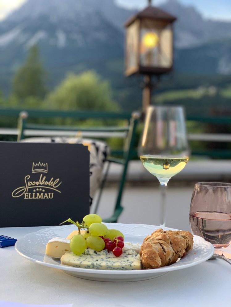 Gerne kann man auf Wunsch zum Abschluss Käse und Wein auf der Terrasse genießen. Dies ist für mich schon fast ein Ritual, denn die Luft ist so rein und der Ausblick so unbeschreiblich, dass man hier nach einem schönen Tag der Sonne beim Untergehen zusehen muss.