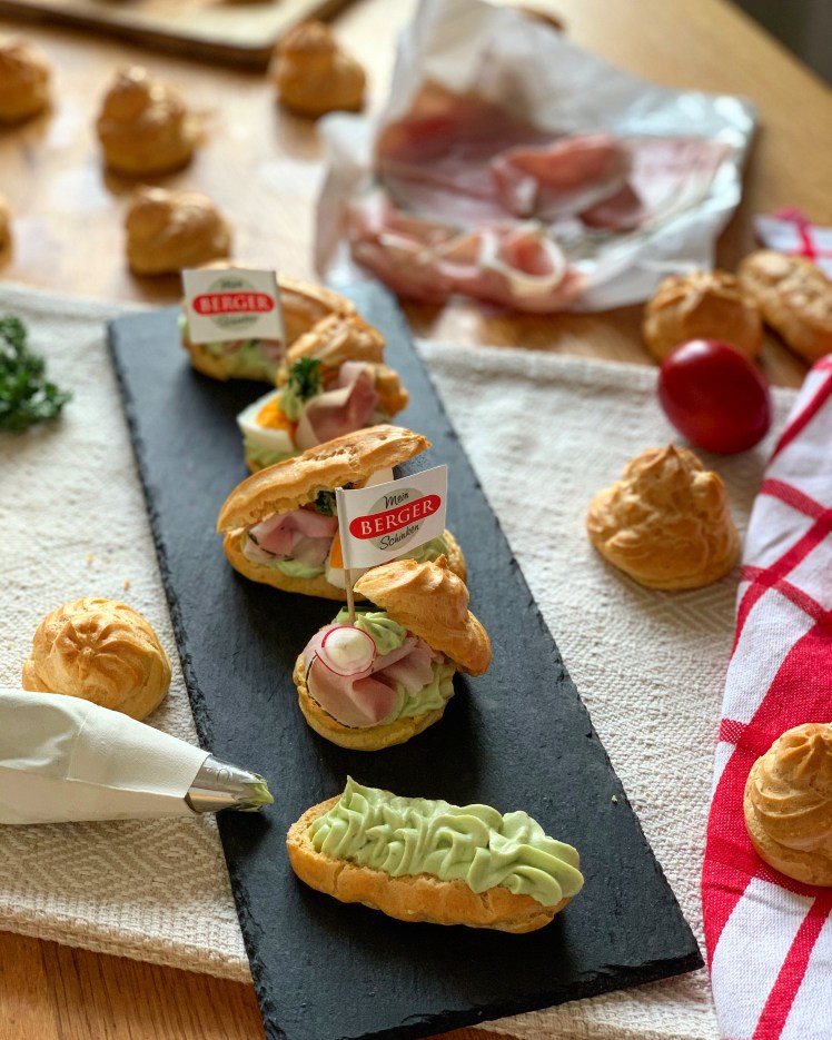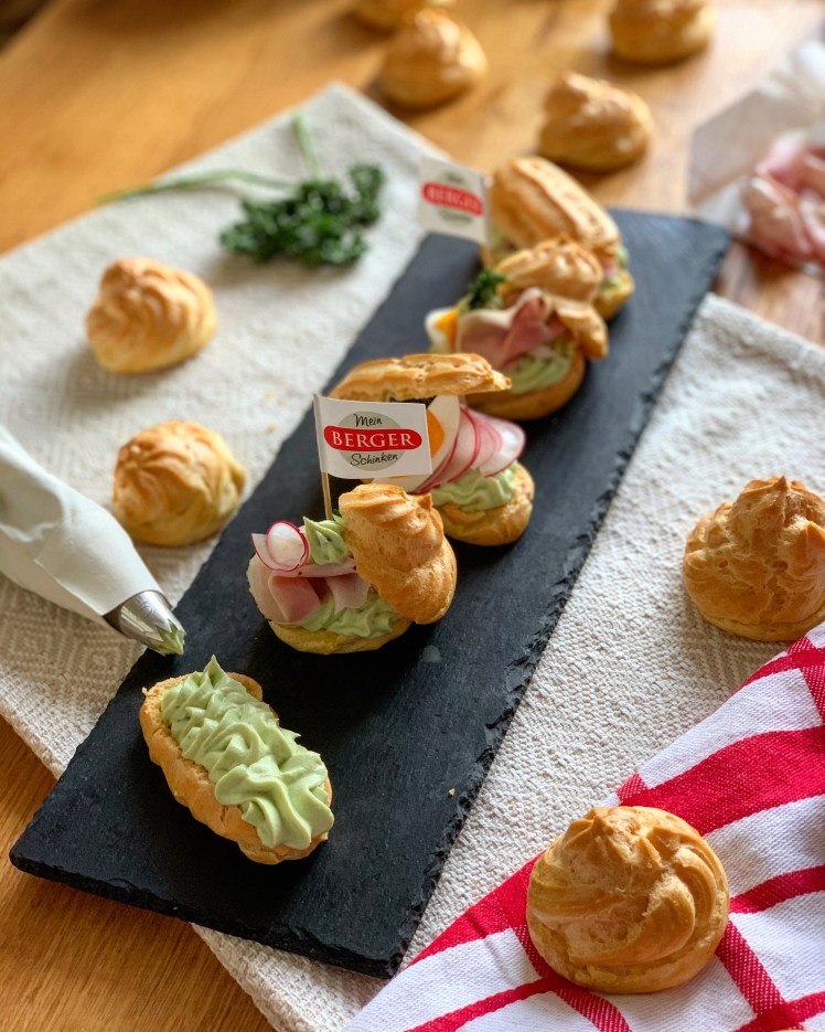 Apropos! Zurück zum Rezept: Abgerundet mit einer einfachen köstlichen Avocadocreme vervollständigen wir dann unsere pikanten Brandteigkrapferl, aber ihr wisst, eines fehlt ja noch.