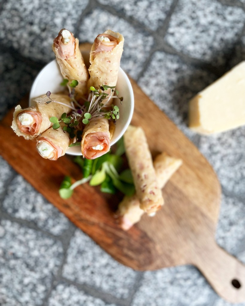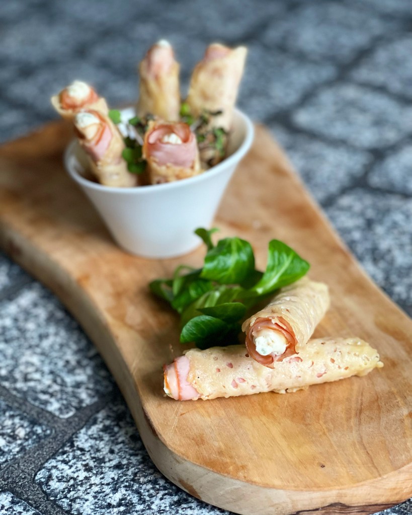 Für dieses feine, leckere Rezept benötigt ihr nur wenige Zutaten und auch nicht viel Zeit. Ein wenig Geschick ist von Vorteil, aber auch nicht zwingend notwendig. Ob ihr die Röllchen als Snack oder als Vorspeise serviert, ist ganz eurer Fantasie überlassen. Auf jeden Fall sind sie ein kulinarischer Hingucker.
