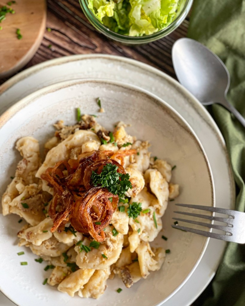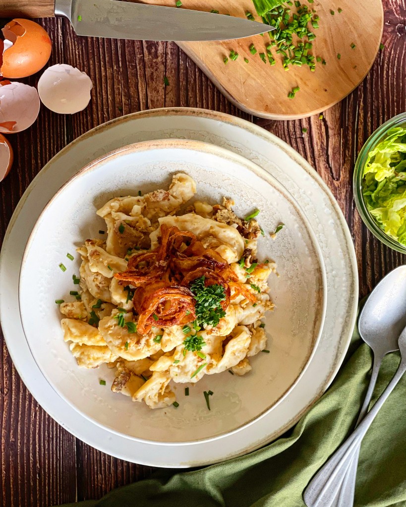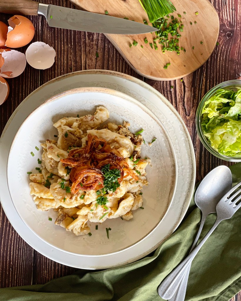 Manchmal braucht es wirklich nicht viel um sein eigenes Soulfood herzustellen. In meinem Fall sind es Eiernockerl. Achtung: Nicht zu verwechseln mit Eierspätzle. Spätzle sind viel kleiner und feiner von der Form her. Eiernockerl hingegen sind richtig schöne grosse Nockerl.