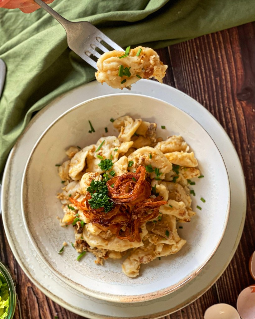 Dieser Klassiker der Wiener Küche ist gelingsicher, kostengünstig und schmeckt sowohl Gross als auch Klein. Eiernockerl werden am liebsten mit Schnittlauch und grünem Salat serviert. In meiner Version gibt es dazu noch etwas Röstzwiebel, denn ich finde die passen hervorragend dazu.