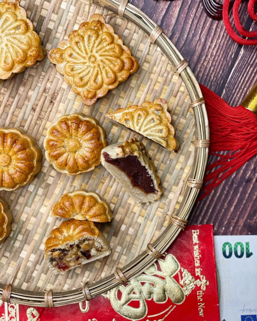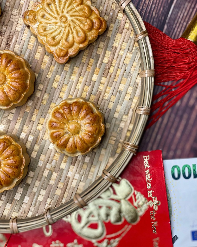 Zum traditionellen Neujahrsfest werden eben Mooncakes an Freunde und Verwandte geschenkt. Diese kleinen Küchlein können sowohl salzig als auch süss gefüllt sein.