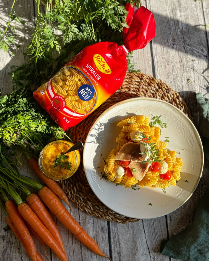 Ich probiere ja gerne neue Speisen aus oder besser gesagt, ich experimentiere gerne damit, Dinge zu verändern um zu sehen ob sie so auch funktionieren. In diesem Beitrag teste ich die neuen Spiralen aus der Goldmarke von Recheis aus. Der Grundgedanke war, ich wollte für Ostern ein passendes Pesto zaubern. Da liegt es auf der Hand, dass man die Karotte verwendet, weil sie gerade Saison hat. Wie ich alles genau anstelle, wusste ich nicht, aber durchs Probieren bin ich zu einem leckeren und überzeugenden Ergebnis gekommen.