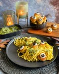 - Cremige Curry-Spaghetti mit gruseligen Gemüseaugen
