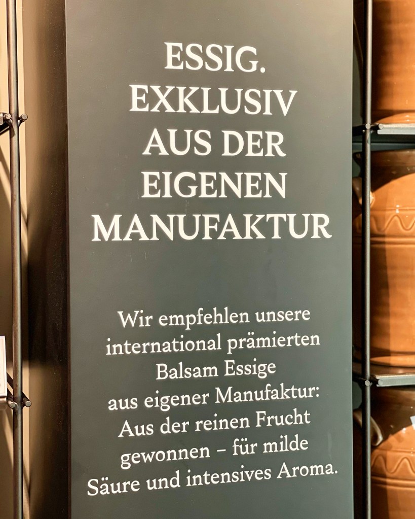Alles, was das Feinschmeckerherz begehrt! Ich muss euch warnen. Macht nicht den gleichen Fehler wie ich und geht nur an den Filialen vorbei, sondern geht bewusst rein und schaut euch aktiv um. Ihr werdet Weine, Spirituosen, Essige, Öle und Feinkost entdecken. Ich habe nicht schlecht gestaunt, was es alles zu erkunden gab. Obwohl die Filialen alle nicht sehr gross sind, fassen sie ein unglaublich grosses und umfangreiches Sortiment.