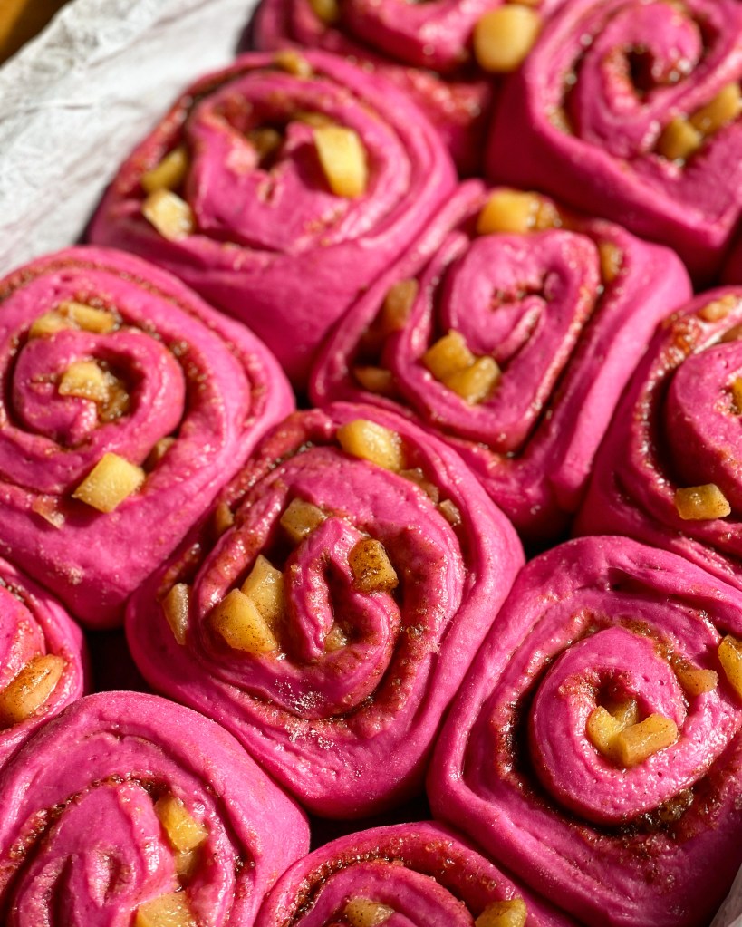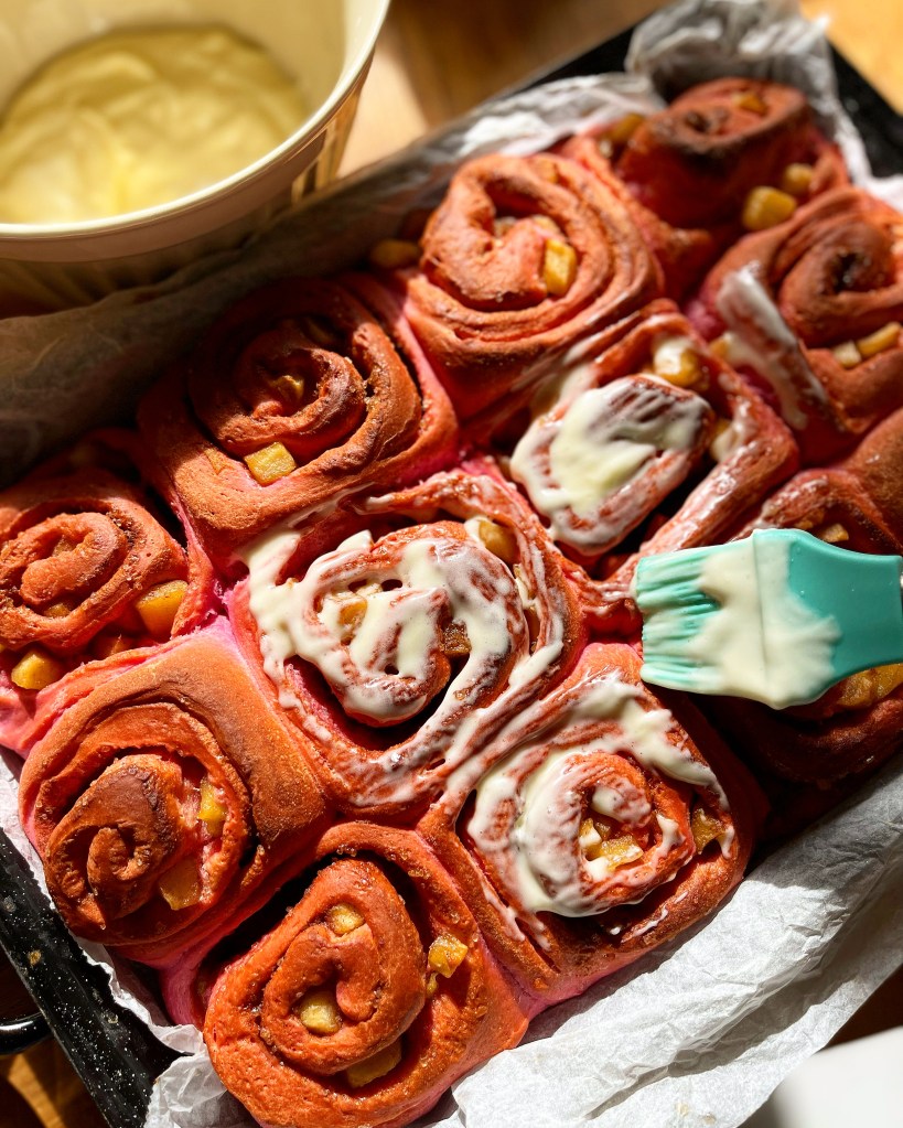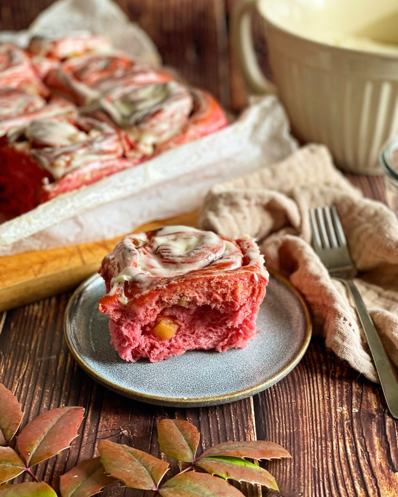 Ganz einfach… Sie verleiht dem Teig etwas Erdiges, Frisches und passt somit wunderbar zum Gesamtbild. Und außerdem, wie viele von euch haben schon einmal rosarote Zimtschnecken gesehen, geschweige denn gegessen. Na eben! Lasst es euch schmecken und sagt mir bescheid, ob es gemundet hat.