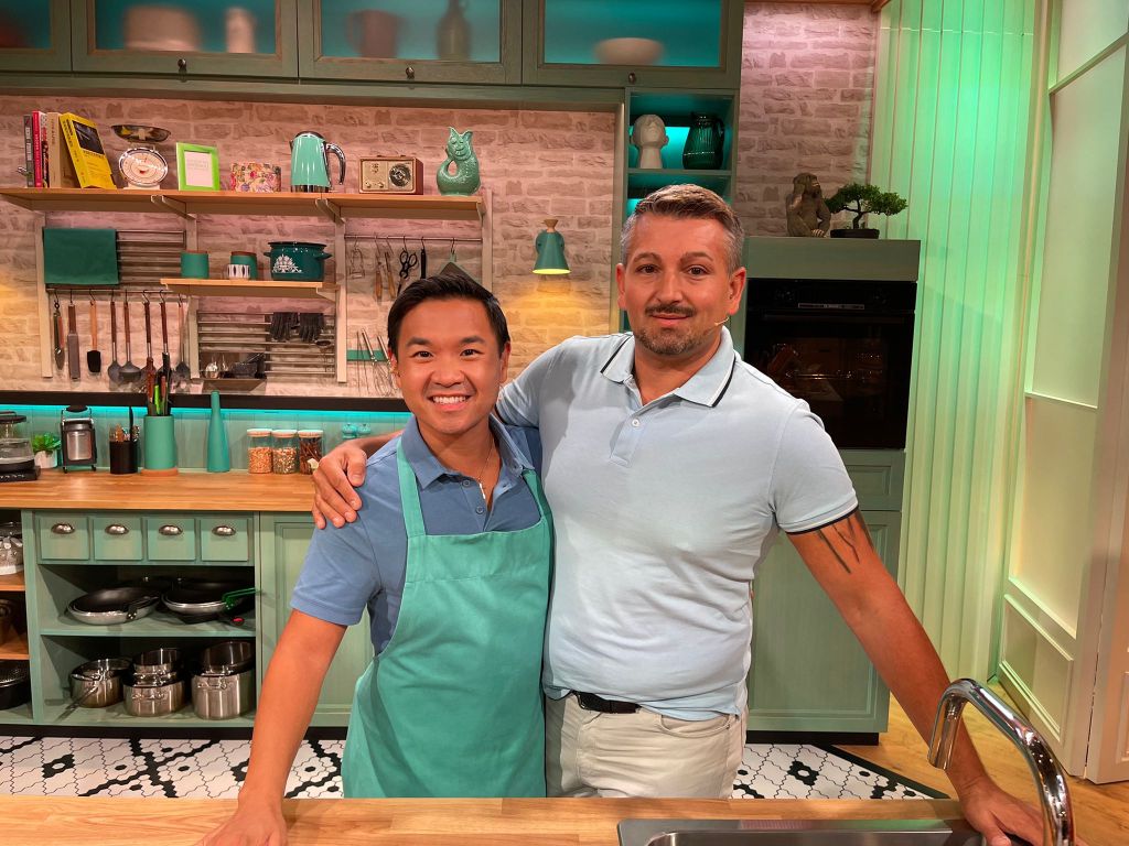 Dies war also das Rezept, das Wei unter meiner Anleitung in 45 Minuten im Studio von „Doppelt kocht besser“ kochen musste. Und er hat es grossartig gemacht. Die Teller hatte er sehr sauber und toll angerichtet. Und dafür muss man schon ein Händchen haben.