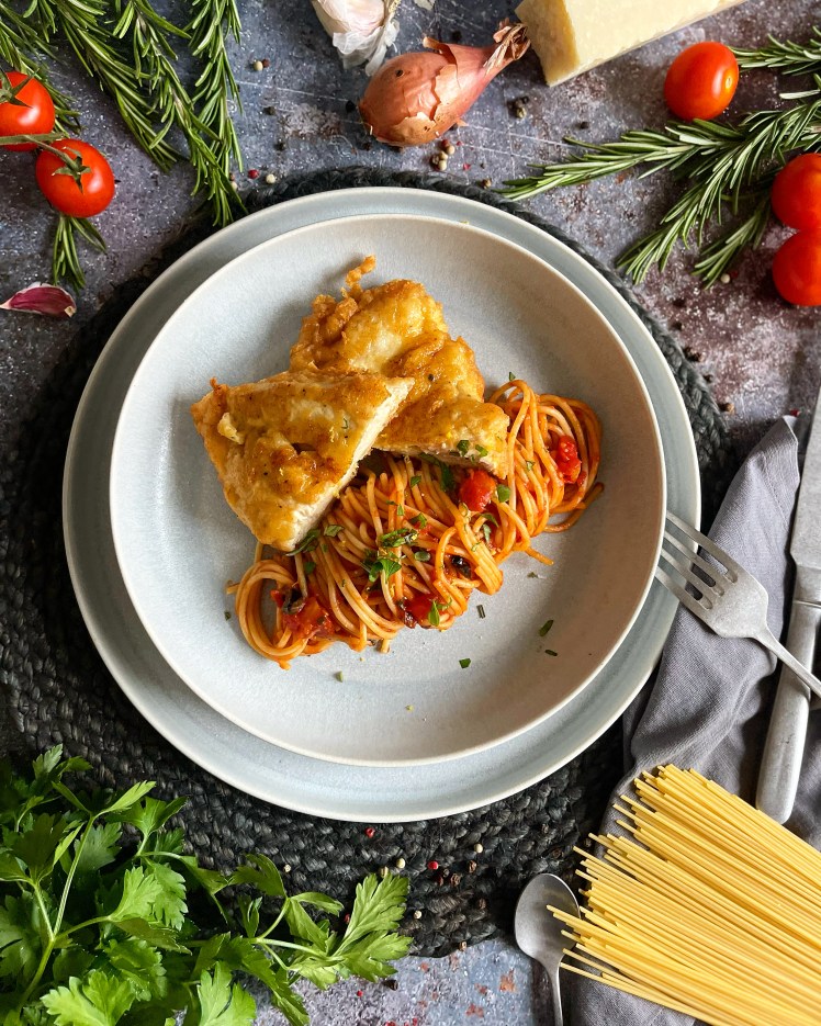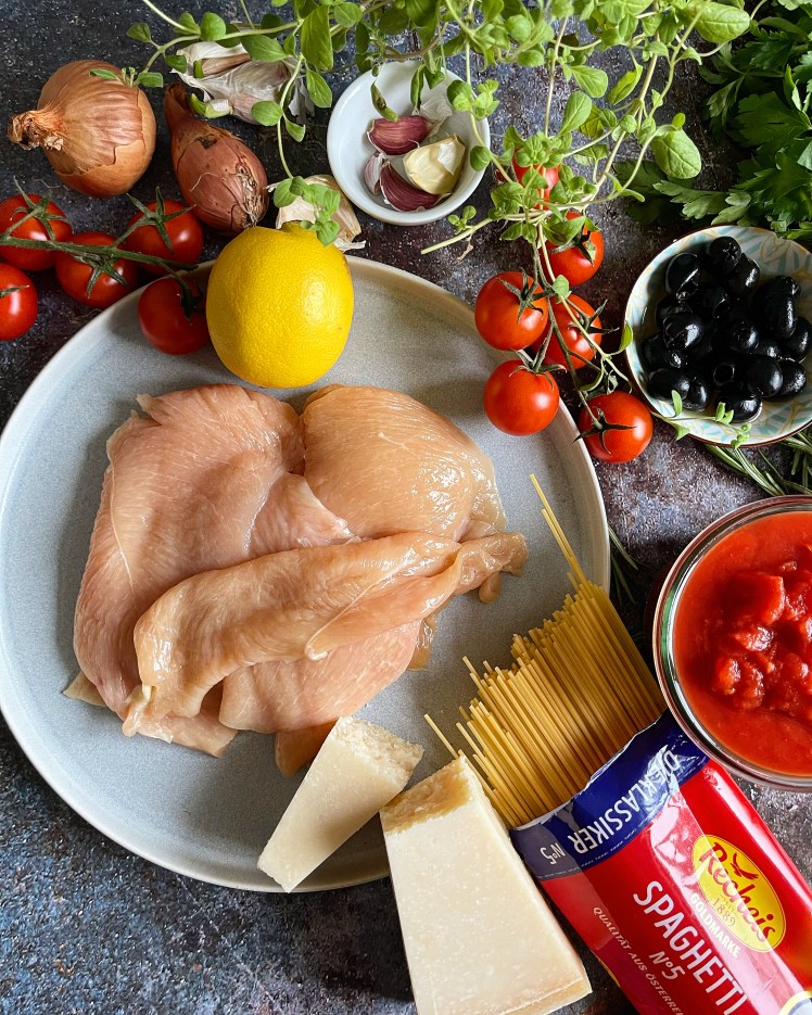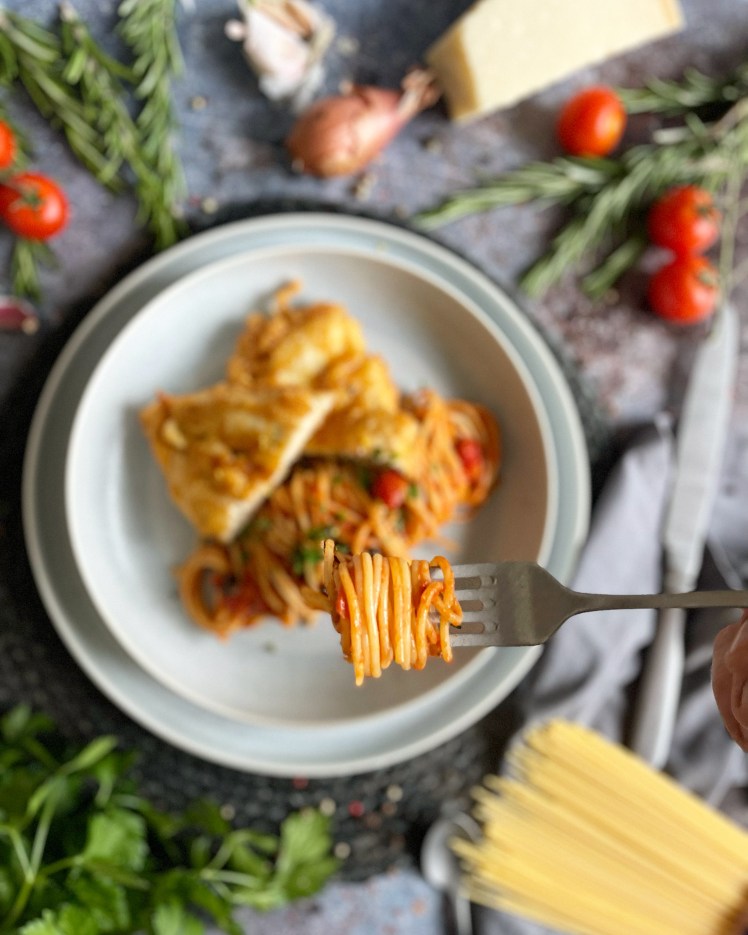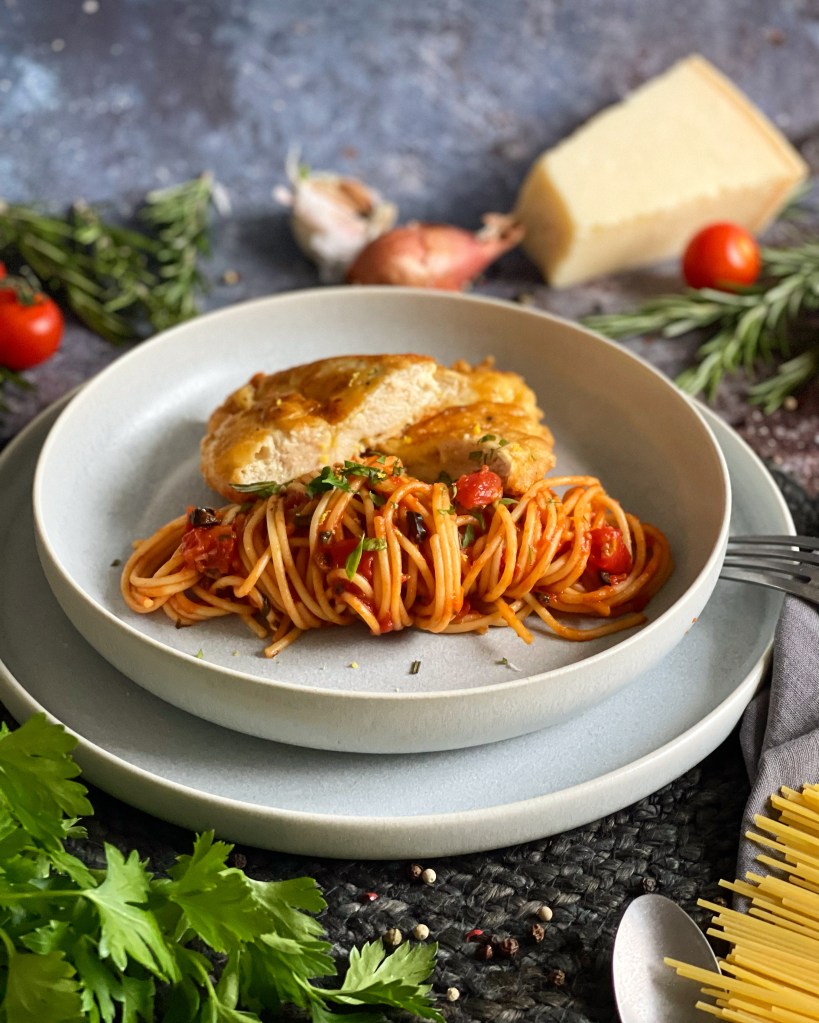 Die Zubereitungs- und Servierart wie ich sie euch in diesem Beitrag zeigen werde, ist nämlich eine Erfindung aus den Vereinigten Staaten (Chicken Piccata). Dort wird die Piccata mit Parmesan und Bröseln paniert und mit Spaghetti in Tomatensauce serviert. Ich hatte nicht schlecht gestaunt, als ich das herausgefunden habe. Aber dennoch ist „meine „Thoms Piccata“ etwas anders, denn in meinem Rezept verwenden wir keine Brösel für die Ummantelung. Die Tomatensauce ist mit Zitrone und Oliven verfeinert und mit frischem Rosmarin abgerundet. Man könnte also schon fast glauben, man geniesst hier (wieder) auf Italienisch.