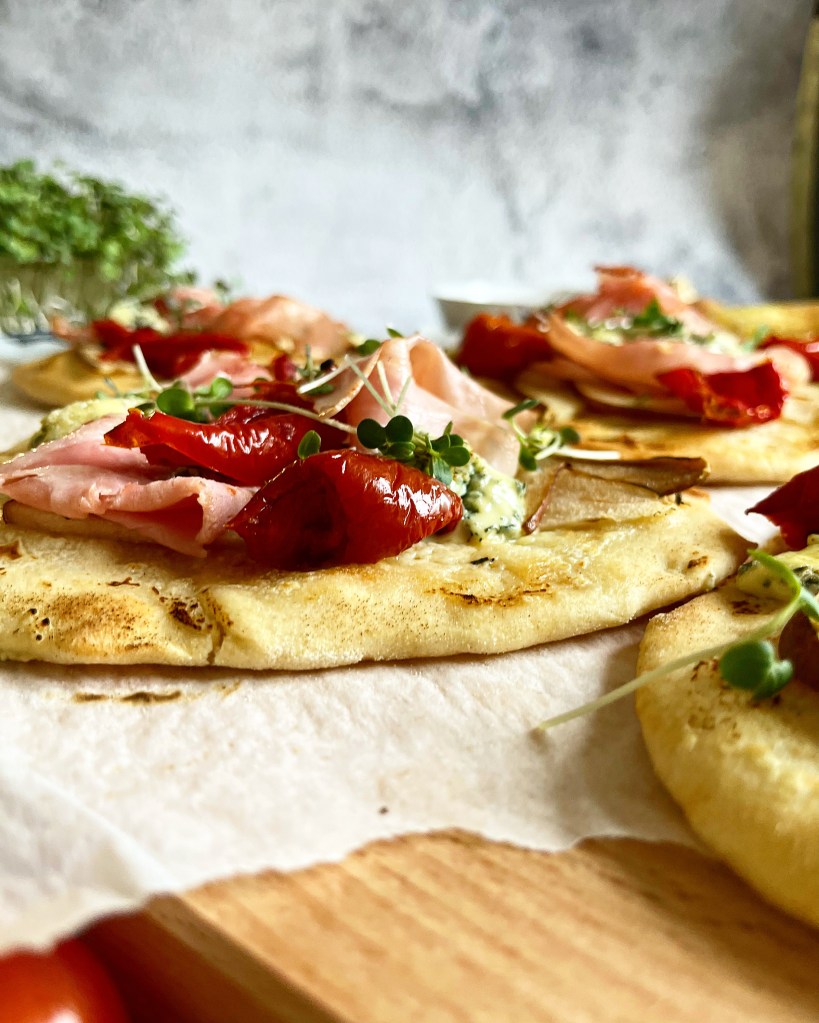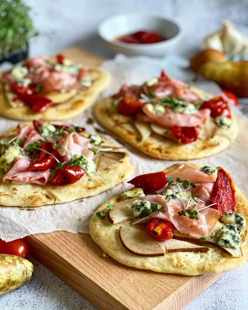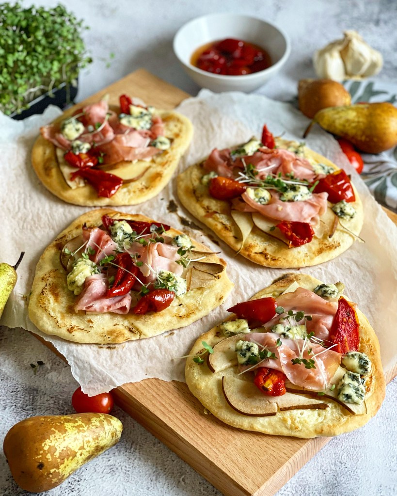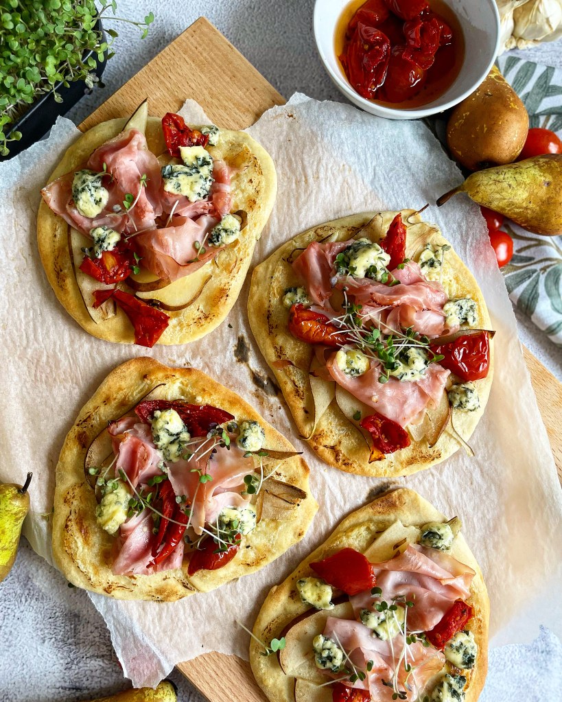 Draussen stürmt und schneit es und die Sonne zeigt sich eher selten. Deshalb hab ich ein Rezept für euch, das euch etwas Farbe auf den Teller und Wärme in die Bäuche zaubert. In diesem Rezept zeige ich euch eine relativ schnelle, jedoch sehr schmackhafte Alternative von klassischen Flammkuchen. Egal ob als Partysnack oder Lunch-Idee, diese Miniflammkuchen sind auf jeden Fall unschlagbar im Geschmack.