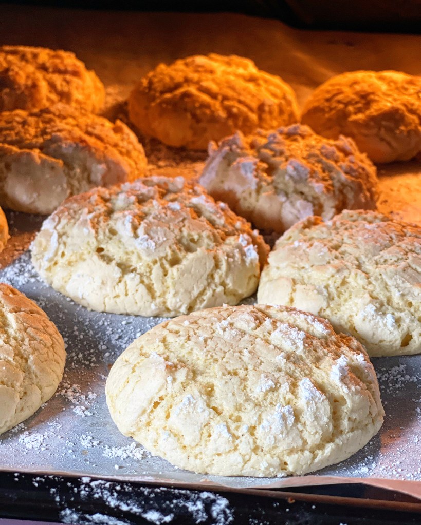 Ich weiss jetzt auch warum man Backpulver und Natron verwendet. Backpulver lässt den Teig in die Höhe gehen und das Natron in die Breite.