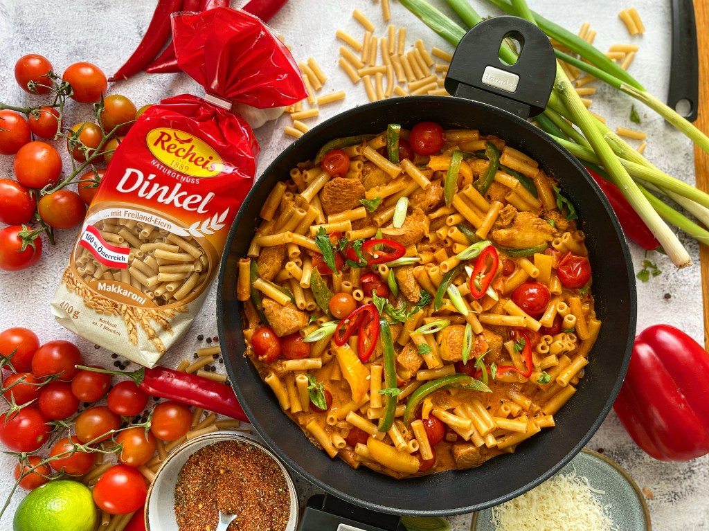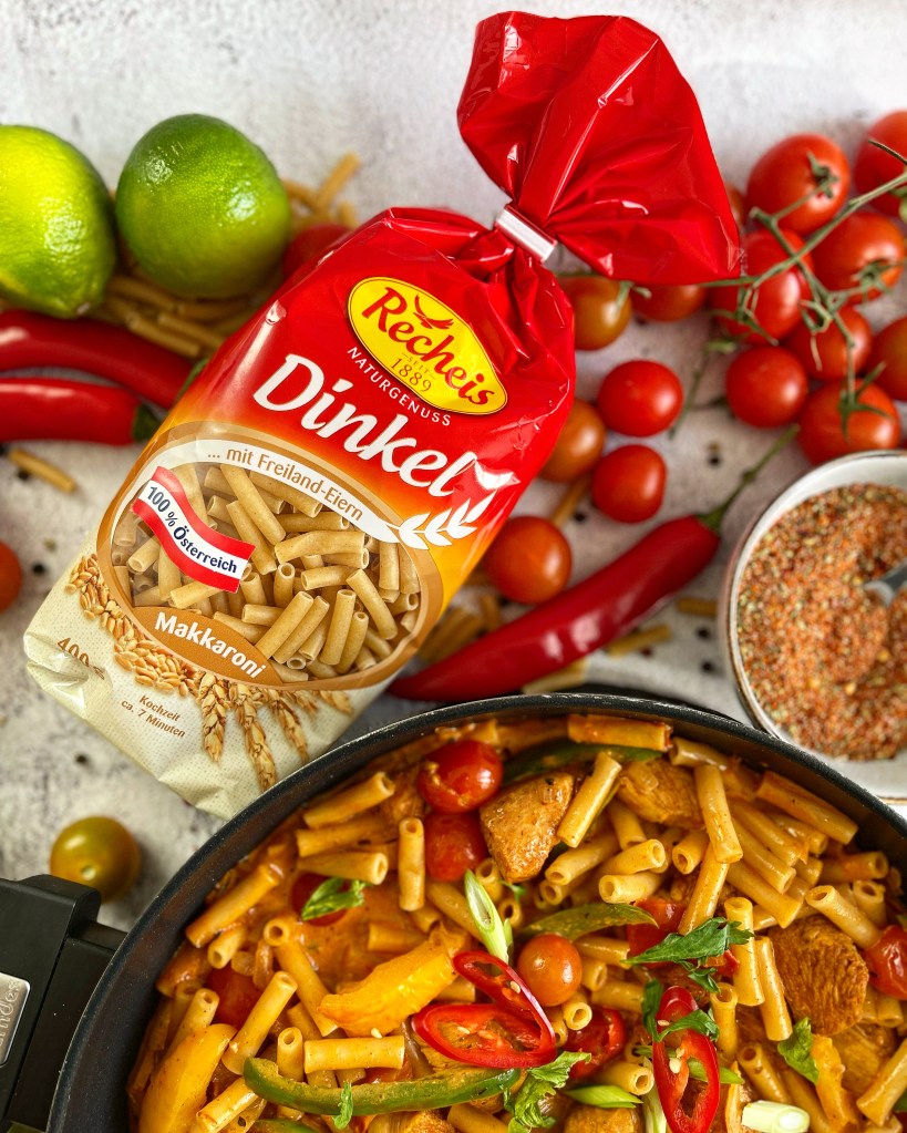 In diesem besonderen Rezept möchte ich euch die neuen Naturgenuss Dinkel Makkaroni von Recheis vorstellen. Ihr wisst ja, dass neben den Spaghetti Makkaroni meine Lieblingsnudelform sind. Für dieses Gericht werden wir auch eine eigene Gewürzmischung herstellen, die ihr dann sogar für viele andere Speisen verwenden könnt.