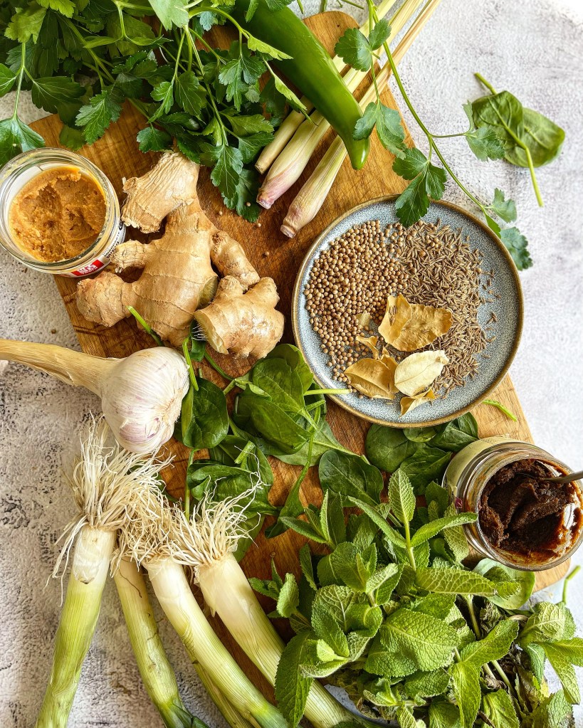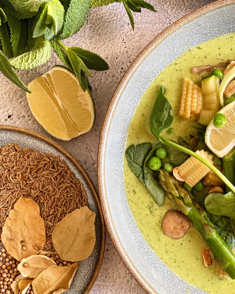 Ob mit oder ohne Kokosmilch, unverzichtbar sind aber Gewürze wie Kreuzkümmel, Koriandersaat, Koriander, Ingwer, Knoblauch und Senfkörner.