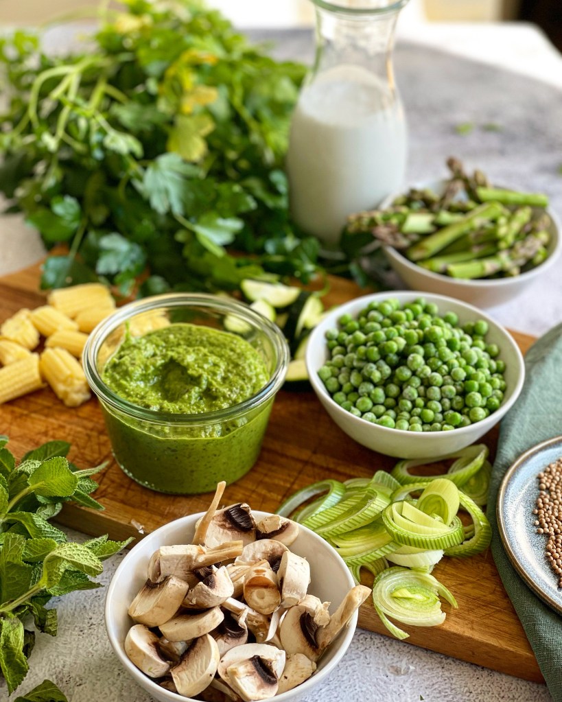In diesem Rezept stellen wir zuerst eine Paste her, die wir dann zum Würzen für unser grünes Thai Curry benötigen. Wenn ihr dieses nicht komplett aufbraucht, könnt ihr es im Kühlschrank gut verschlossen lagern.