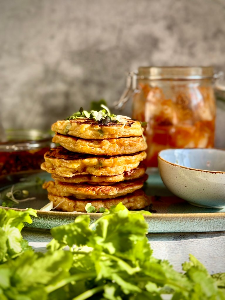 Diese äußerst beliebte, koreanische Street Food Köstlichkeit wird traditionell zum Frühstück gegessen, als Beilage zum Abendessen oder als Snack für Zwischendurch. Also ihr seht, es ist immer Platz für ein paar leckere Kimchi Pancakes. Lest weiter um mehr über die superleichte Zubereitung zu erfahren.