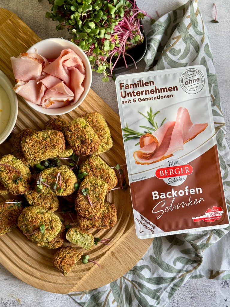Als Geschmacksgeber für die Nuggets verwende ich – neben dem Käse – den Backofen Schinken von Berger entschieden. Mit seiner leichten Knusperkruste und seinem feinen Bratenaroma runder er das Geschmackserlebnis perfekt ab.