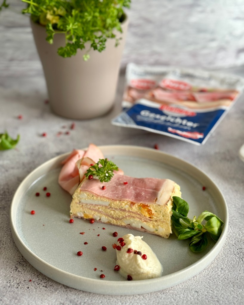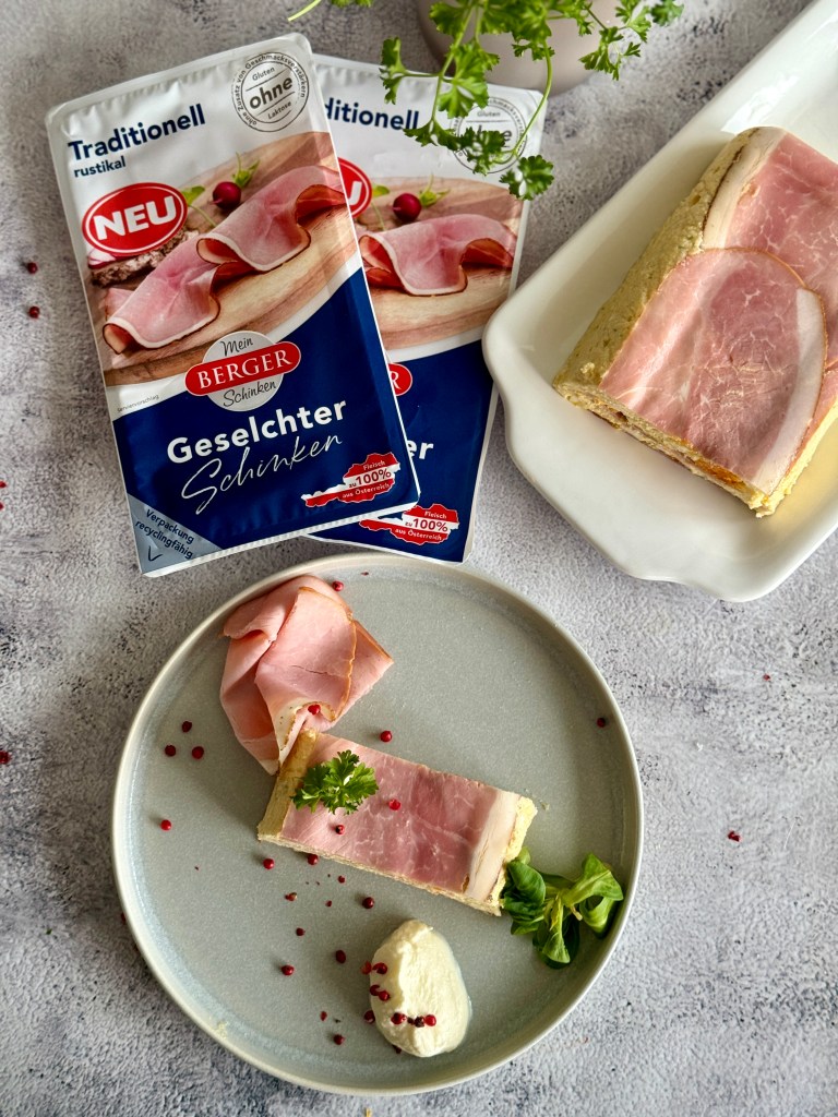 In diesem Rezept kommt der Gelschte Schinken von Berger Schinken zum Einsatz. Dieser herzhaft-rustikale Schinken ist intensiv geräuchert und punktet mit einem mürb- würzigen Geschmack. Traditionell rustikal.