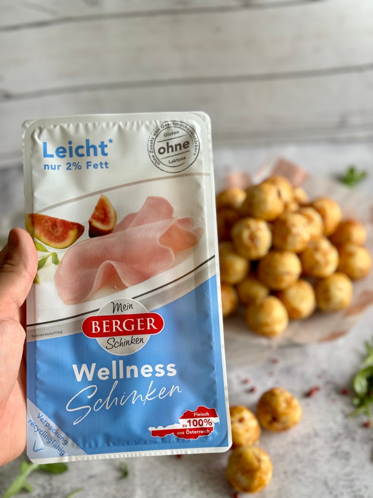 In diesem Rezept verwende ich den Wellness Schinken von Berger Schinken. Mit nur 2% Fett passt er zu einer bewussten, ausgewogenen Ernährung, einem neuen, leichten Lebensgefühl, aber ohne auf Geschmack zu verzichten.