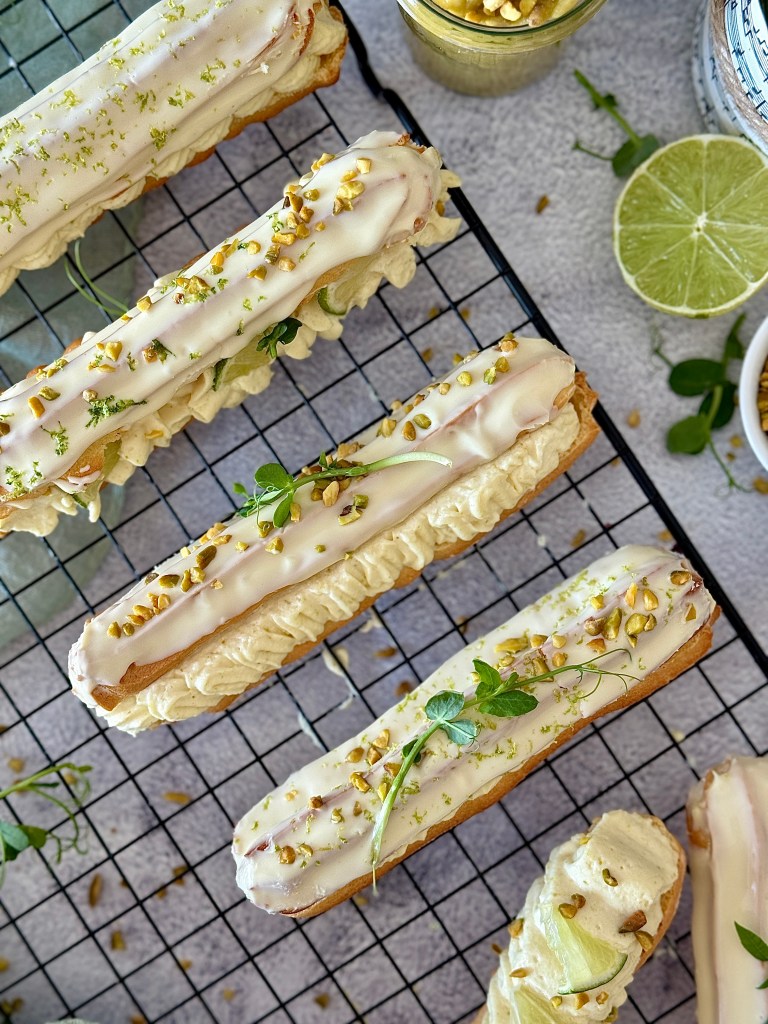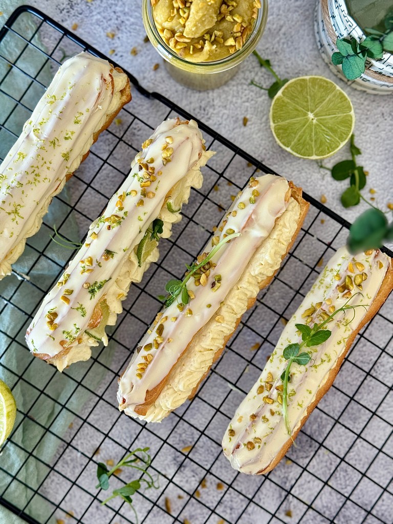 Übrigens! Ich finde, diese Eclairs sind der beste Beweis, dass nicht immer nur Himbeeren zur Pistaziencreme passen, sondern auch aromatische Limetten. Lasst es euch schmecken, meine Lieben! Schreibt mir gerne eure Feedbacks oder sendet mir sogar Bilder von euren Kreationen!