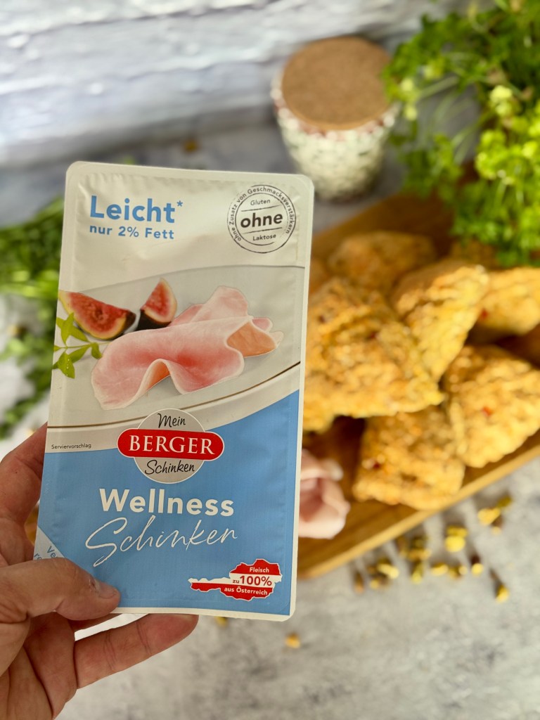 Wer sagt eigentlich, dass Scones immer süß sein müssen? Heute zeige ich dir eine herzhafte Variante, die nicht nur wunderbar saftig ist, sondern auch mit einem echten Schmankerl punktet: dem Wellness-Schinken von Berger Schinken.