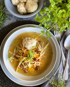 - Kaspressknödel mit Bärlauch auf Wiener Krautsalat