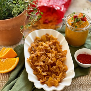 ACHTUNG SUCHTGEFAHR! Ja genau, das hatte ich schon beim letzten Beitrag über Nudelchips geschrieben. Heute stell ich euch eine etwas andere Variante vor. Eine super knusprige mit leckerem Dip. Diesmal hab ich auch eine andere Nudelart gewählt. … Mehr Herbstlich-knusprige Mascherl-Chips