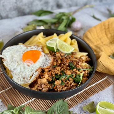 Thailand-Feeling für zuhause: Mein Pad Krapao Penne mit Spiegelei