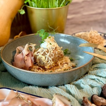 Bevor wir zum Rezept kommen, muss ich gestehen, dass obwohl ich Zwiebel und Trüffelschinken sehr mag, mir anfänglich dieses Gericht nicht vorstellen konnte.