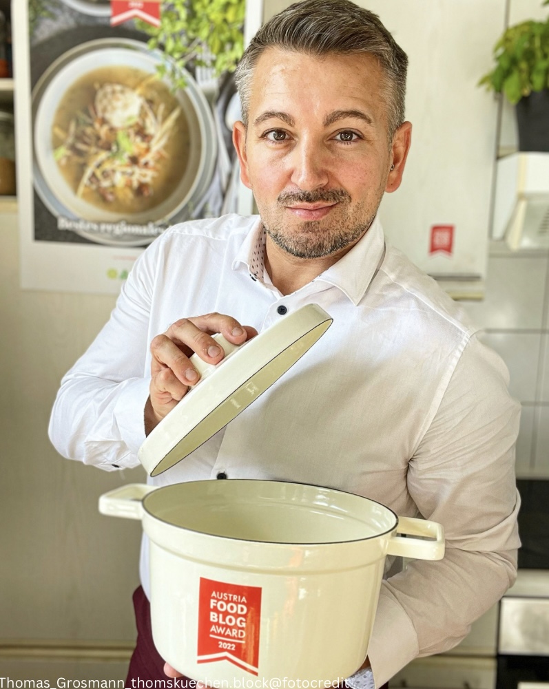 Ich bin 2021 zum zweiten Mal beim Austria Food Blog Award (AFBA) angetreten, weil ich es in meinem Jahr nicht auf die Shortlist, die finale Auswahl an Nominierten, geschafft habe. Bei der Preisverleihung im Oktober 2021 wurde mein Blog schließlich mit dem dritten Platz in der Kategorie „Bester Food Blog Österreichs“ ausgezeichnet. Im Jahr darauf, 2022, wurde ich mit einem ganz besonderen Sonderpreis geehrt, denn ich wurde zum „Food Blogger des Jahres“ ausgezeichnet.